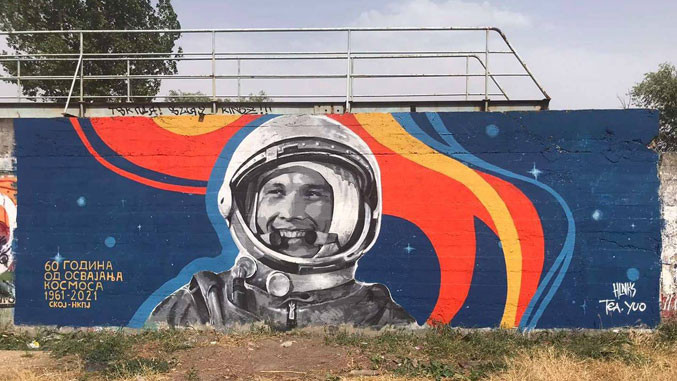 На муралу је јасно исписан и повод његове израде, а у СКОЈУ-у сматрају да је Гагариново освајање космоса преломан тренутак у историји човечанства, који је променио ток савремених догађаја.